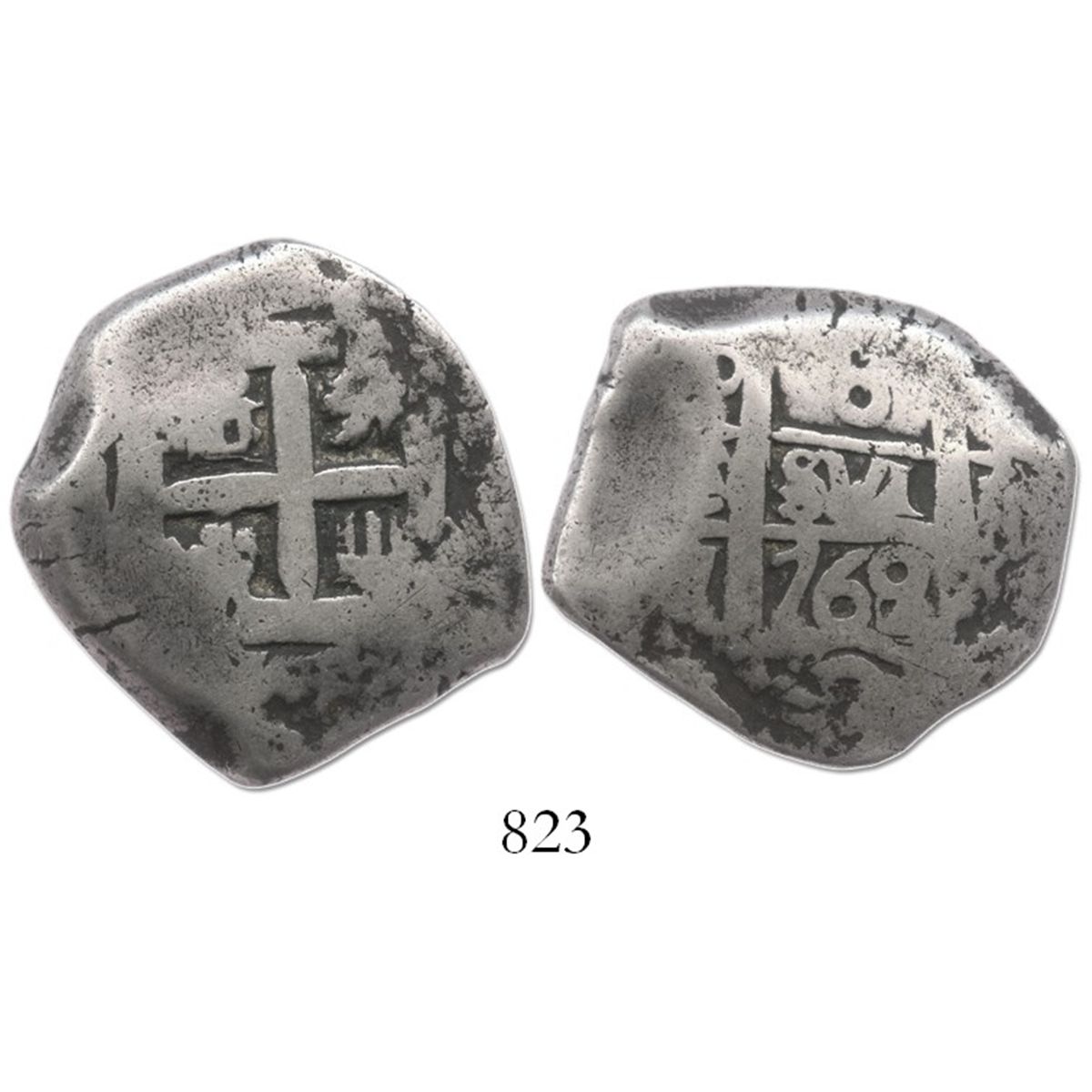 Potosi, Bolivia, cob 8 reales, 1769/8(V-Y), rare.