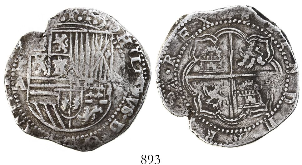 Potosi, Bolivia, cob 8 reales, Philip II, assayer A.