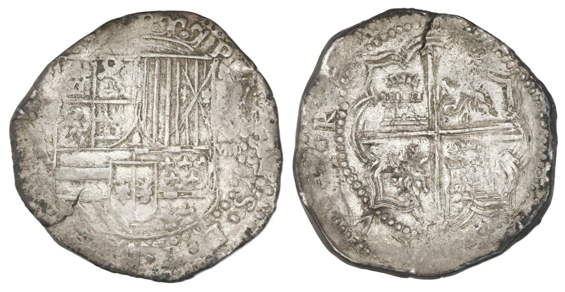 Potosi, Bolivia, cob 8 reales, Philip II, assayer A.