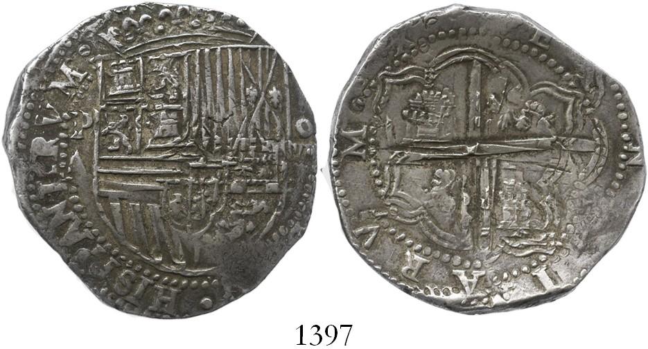 Potosi, Bolivia, cob 8 reales, Philip II, assayer A.