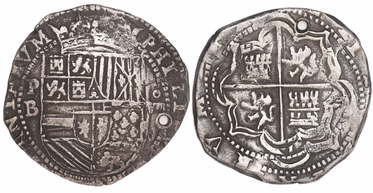 Potosi, Bolivia, cob 8 reales, Philip II, assayer B (3rd period).