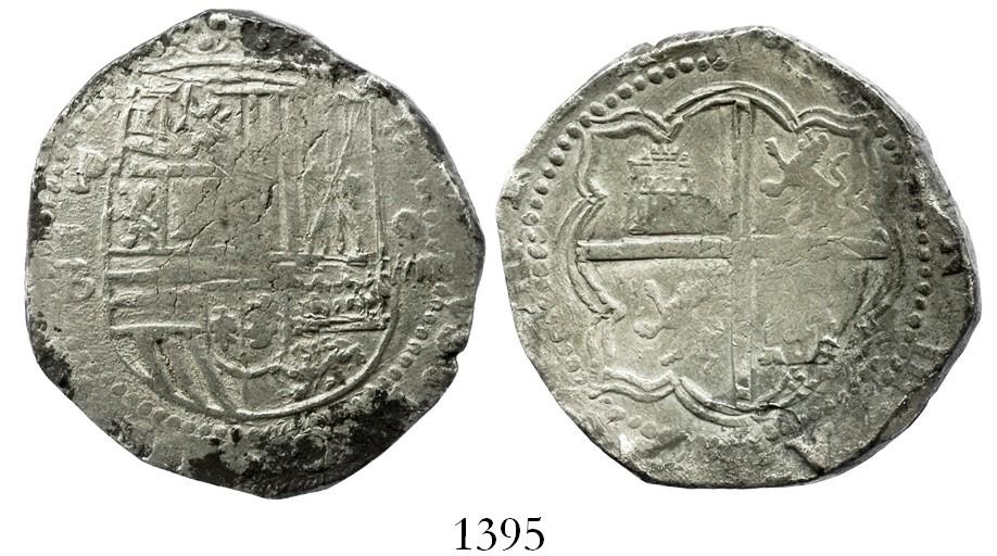 Potosi, Bolivia, cob 8 reales, Philip II, assayer B (3rd period).