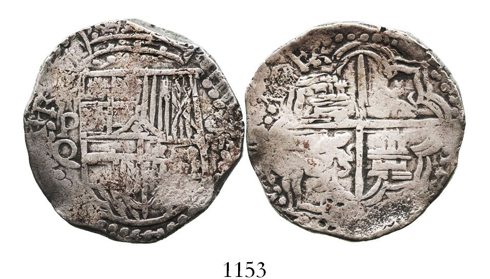 Potosi, Bolivia, cob 8 reales, Philip III, assayer Q, ex-Moreno. S-P17; KM-10; CT-124. 27.5 grams. Deeply toned Fine+ with full P-Q, shield, crown and cross, possible plugged hole in the "o" of the denomination. Purchased from Armando Moreno in 1957, with pedigree tag.