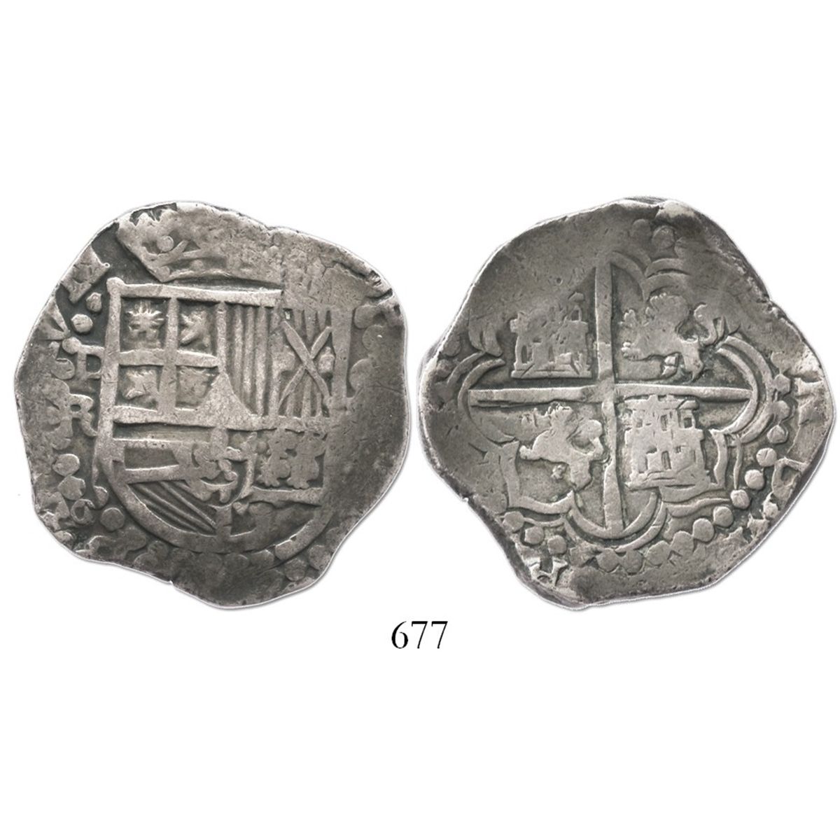 Potosi, Bolivia, cob 8 reales, Philip III, assayer R (curved leg).
