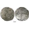 Potosi, Bolivia, cob 8 reales, Philip III, assayer R (curved leg).