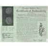 Potosi, Bolivia, cob 8 reales, Philip III, assayer not visible, Grade 3. KM-10. 21.67 grams. Round flan with full shield, off-center full cross, moderate surface corrosion. With Fisher tag and certificate #134082. Recovered from: Atocha, sunk in 1622 west of Key West, Florida