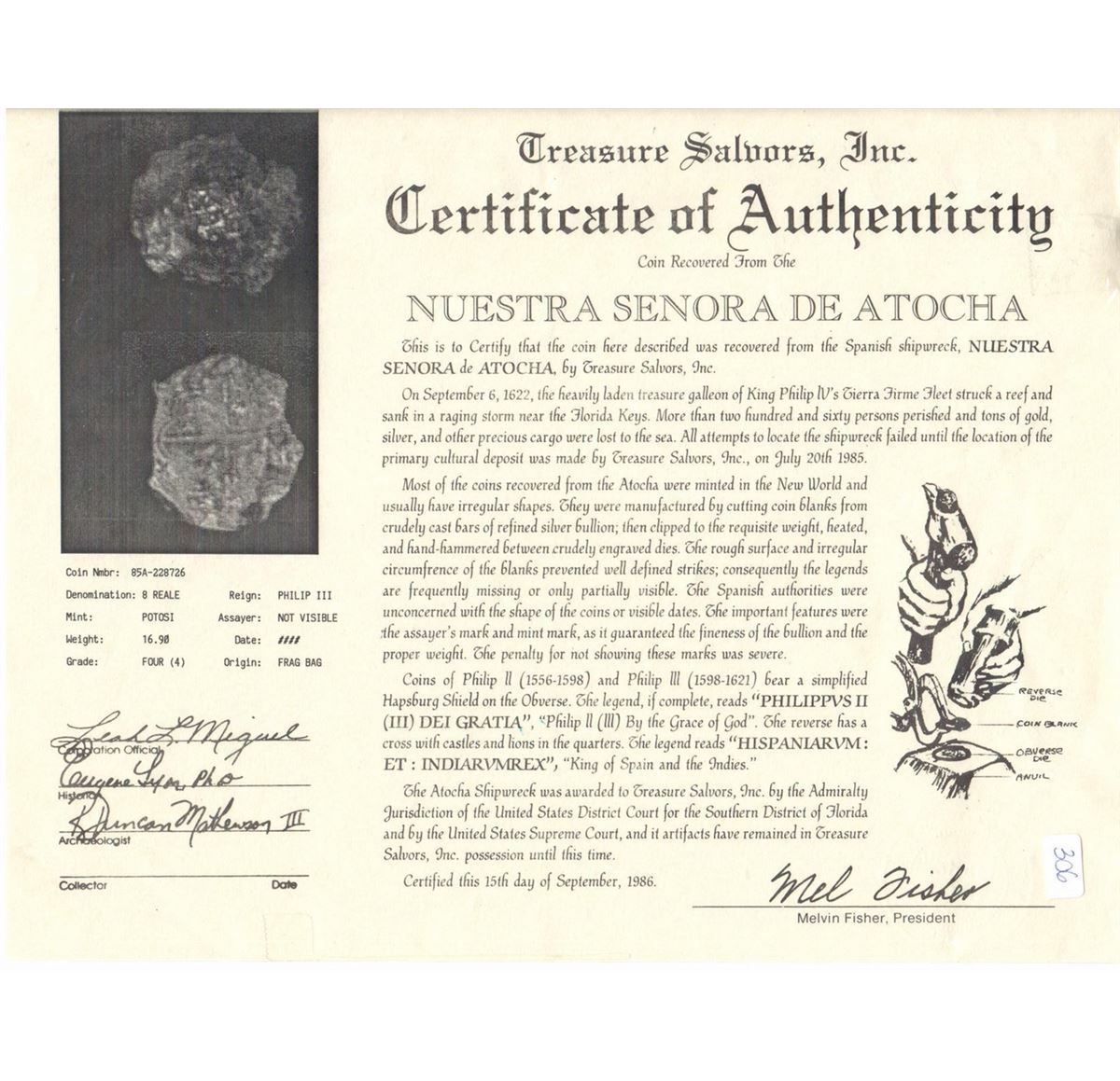 All items are genuine unless noted. Most shipwreck coins and artifacts come with a certificate of authenticity (please check the description for each item). By bidding in this auction you understand and agree to the Terms and Conditions posted here.