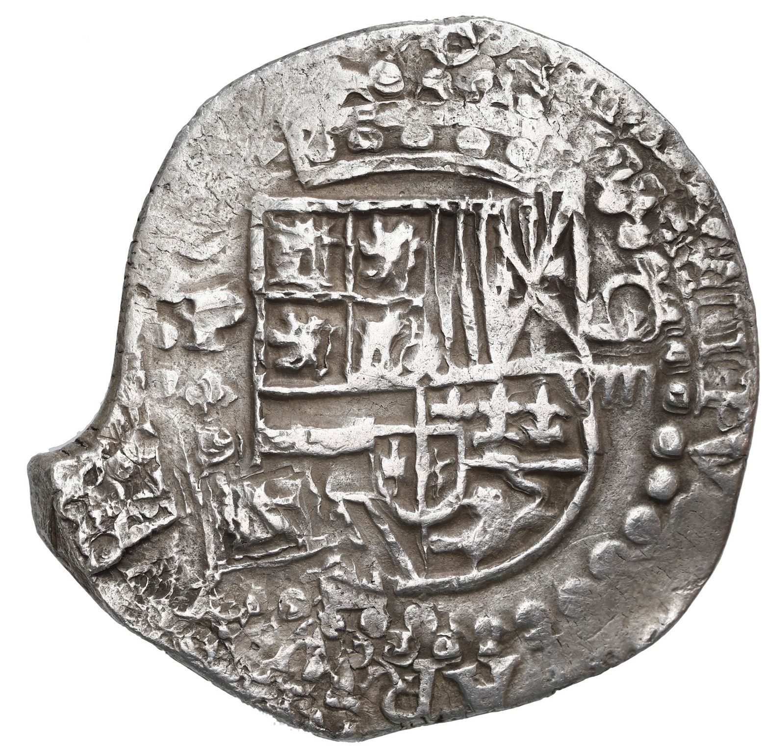 Potosi, Bolivia, cob 8 reales, Philip IV, assayer P (ca. 1622), quadrants of cross transposed, rotat