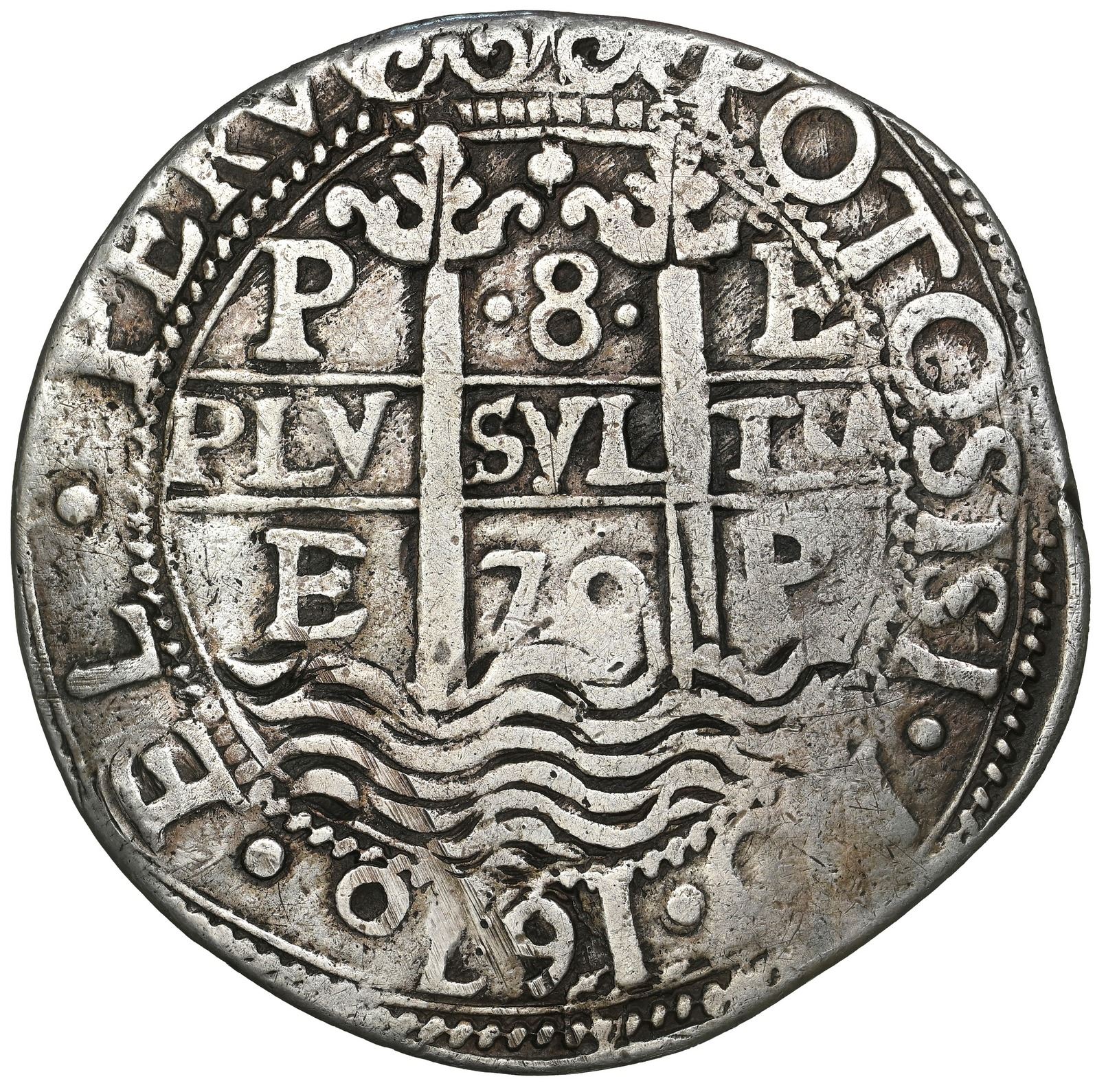 Potosi, Bolivia, cob 8 reales Royal (galano), 1670 E, NGC XF details / plugged, finest known in NGC