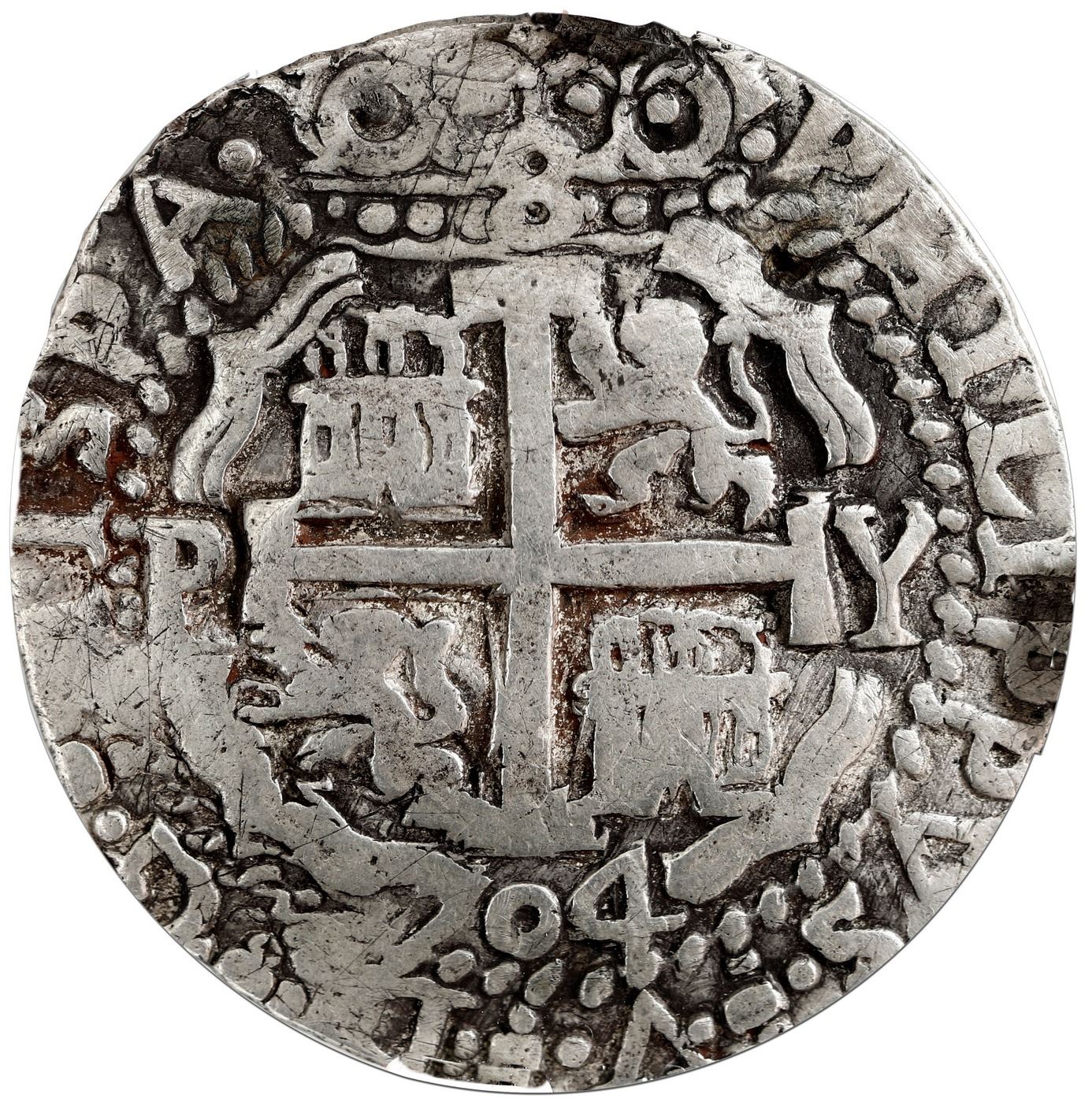 Potosi, Bolivia, cob 8 reales Royal (galano), 1704 Y, rare, NGC VF details / plugged ("top pop").