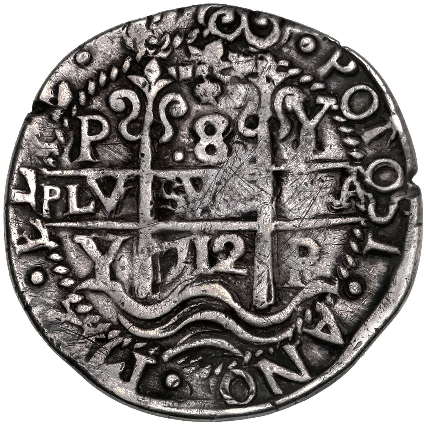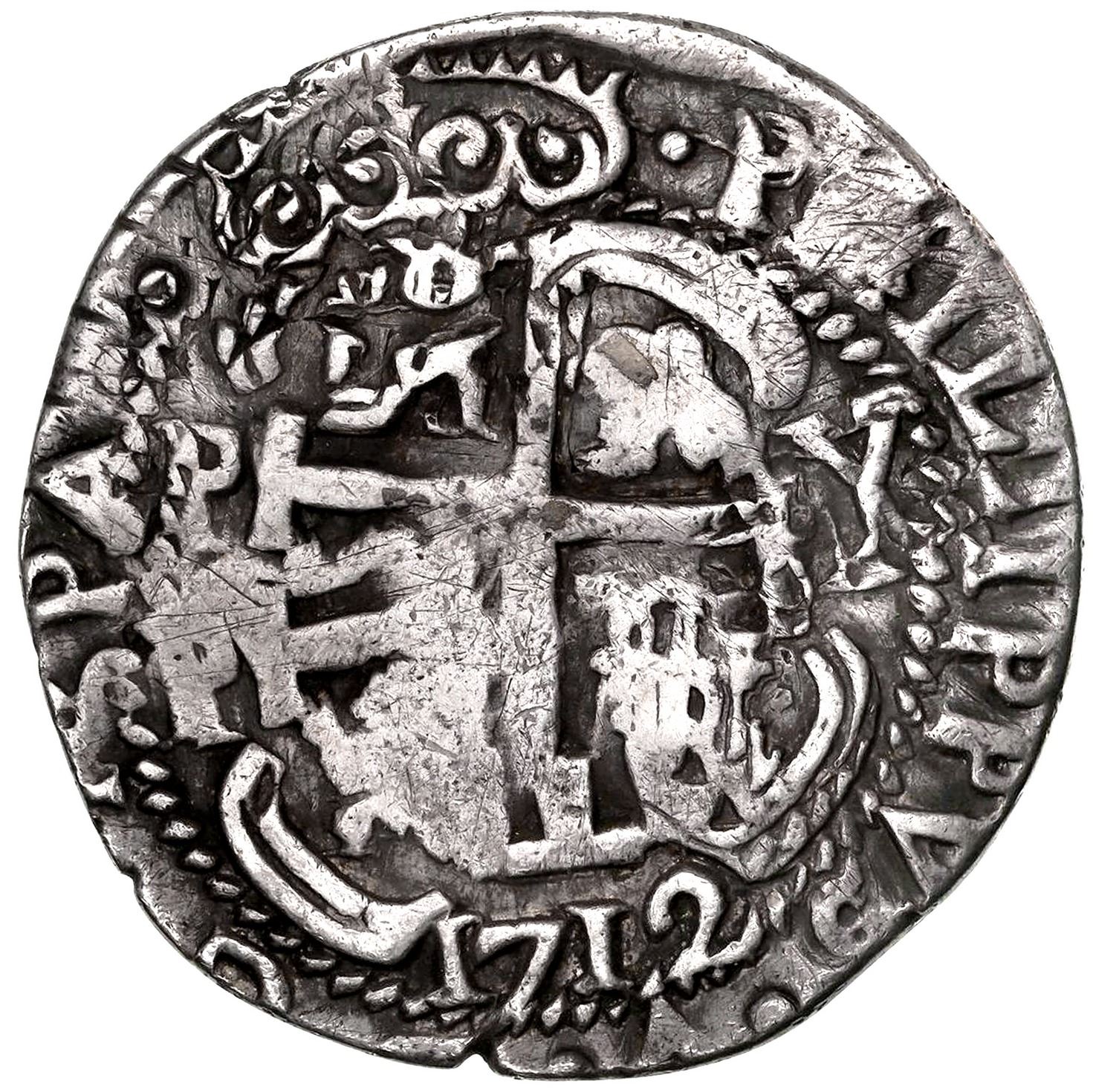 Potosi, Bolivia, cob 8 reales Royal (galano), 1712 Y, rare, NGC VF details / scratches, finest and only example in NGC census, Lazaro Plate Coin. S-P43a; KM-R31; Cal-1484. 26.37 grams. Broad flan with full legends and inner details (amazing contrast to the previous and following lots!), the cross doubled but with impressive four-digit date below, attractively toned and particularly rare as lacking a hole, the old scratches noted by NGC hardly noticeable without magnification, pictured in Lazaro as #255 (rarity R3). NGC #5779587-007. Plate Coin on page 333 of Lazaro's Los redondos de Lima, Mejico y Potosi (1996).