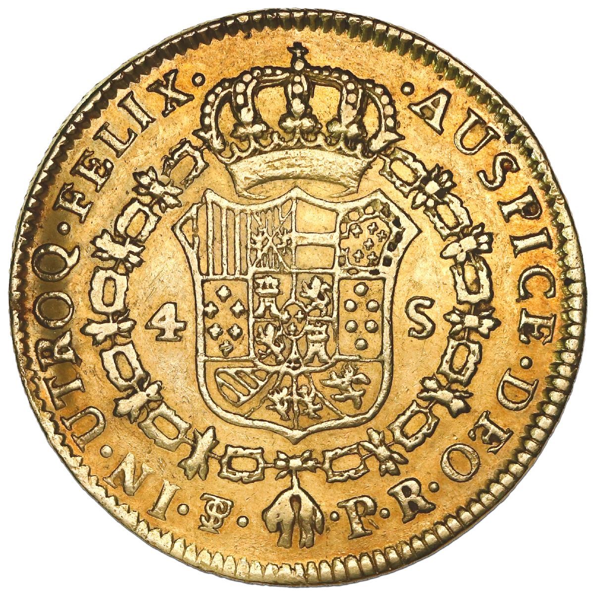 Potosi, Bolivia, gold bust 4 escudos, Charles III, 1780PR, rare.