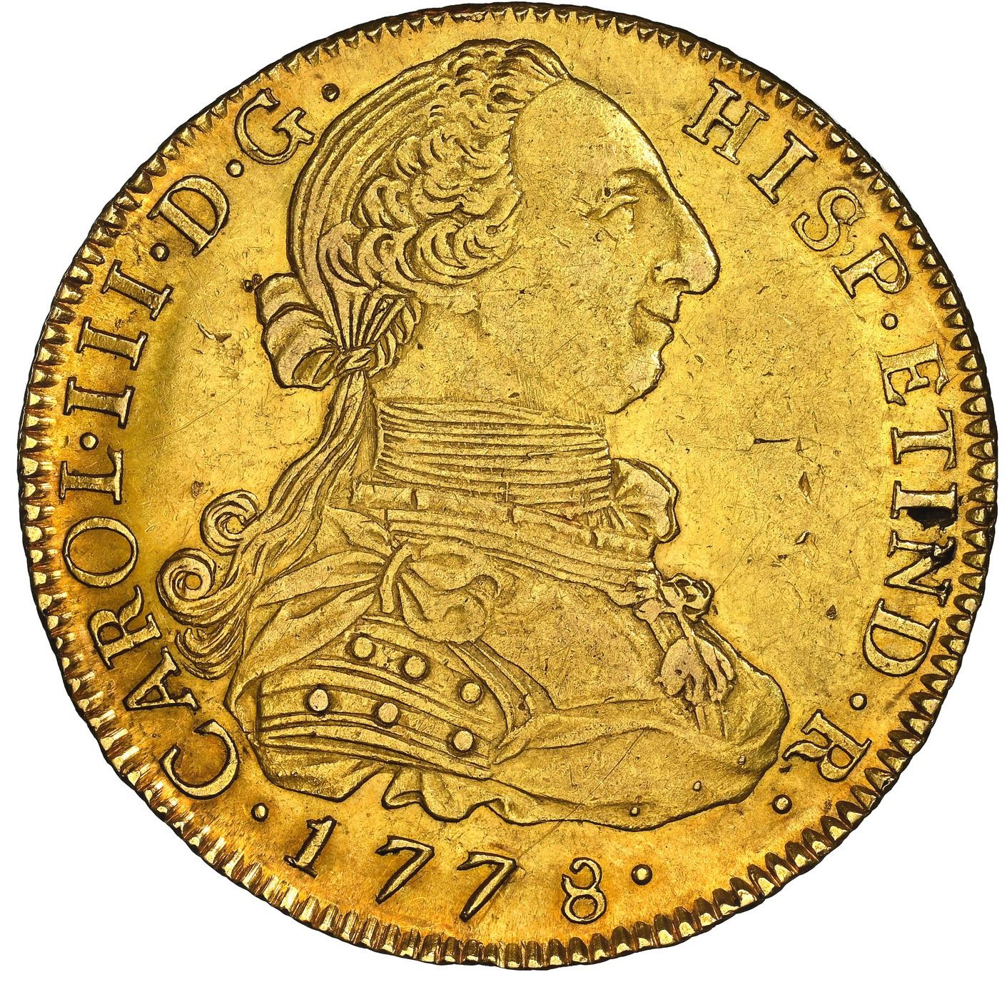 Potosi, Bolivia, gold bust 8 escudos, Charles III, 1778 PR, very rare, NGC AU 58, finest known in NG