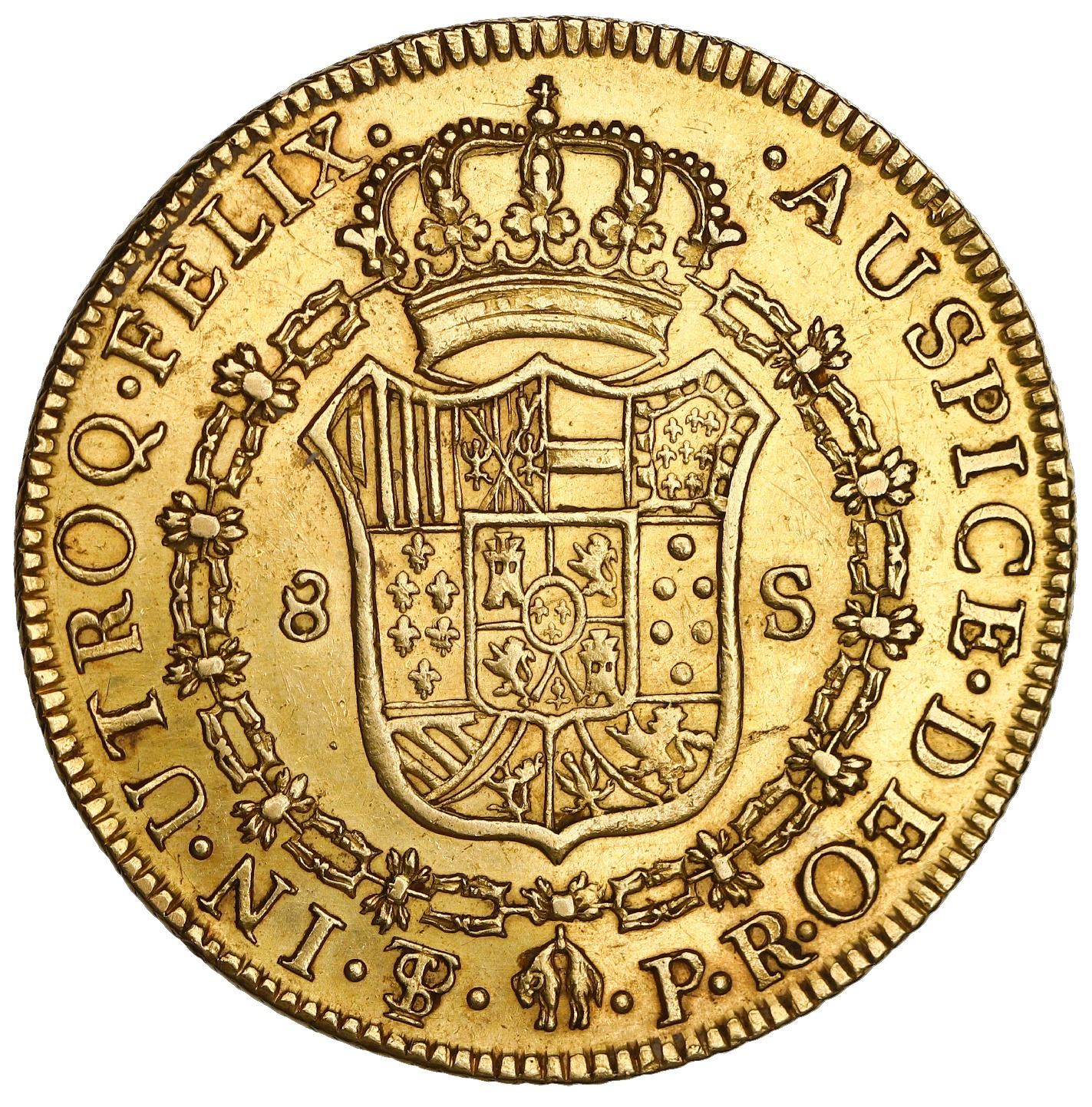 Potosi, Bolivia, gold bust 8 escudos, Charles III, 1784/3 PR.