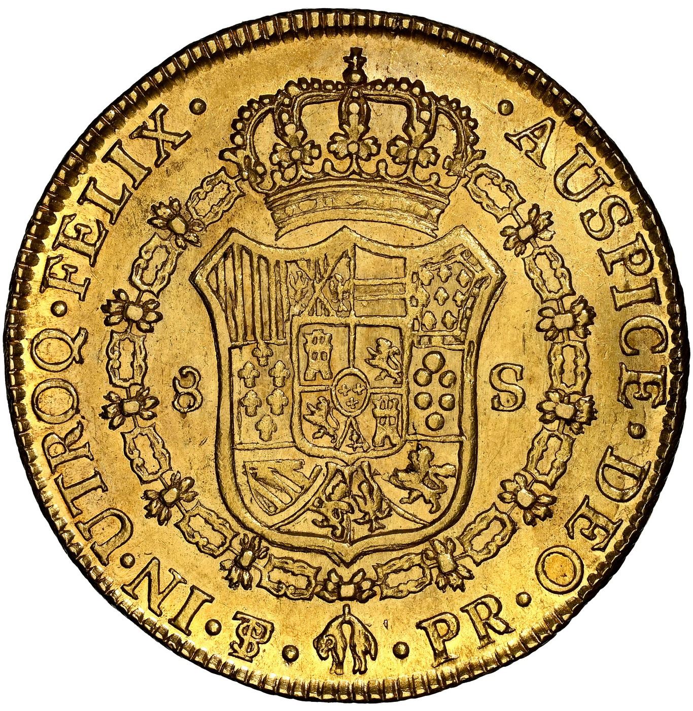 Potosi, Bolivia, gold bust 8 escudos, Charles III, 1788 PR, NGC MS 61.