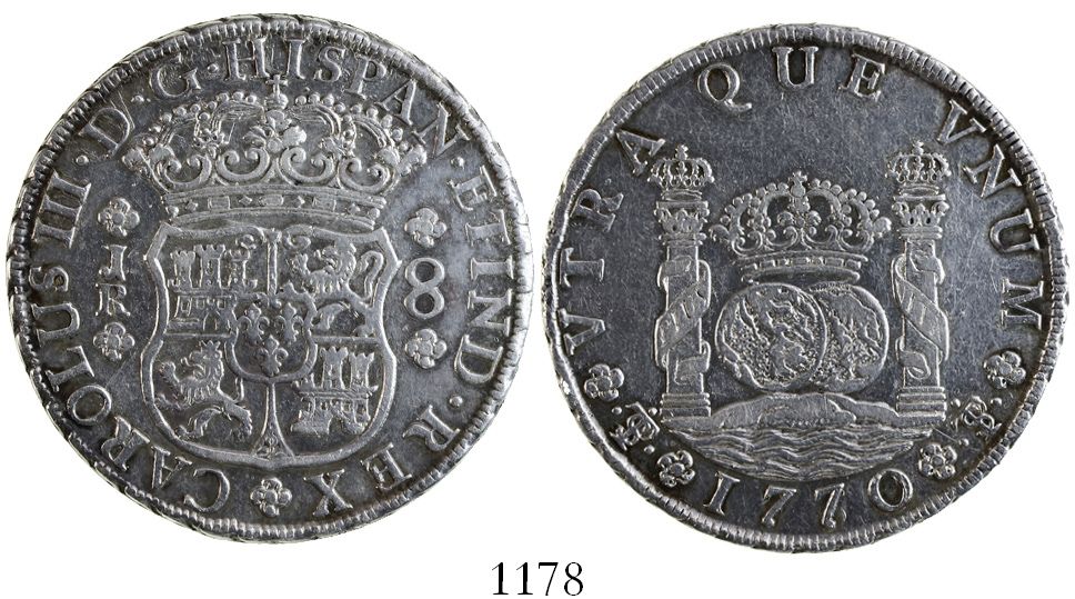 Potosi, Bolivia, pillar 8 reales, Charles III, 1770/69JR, rare.