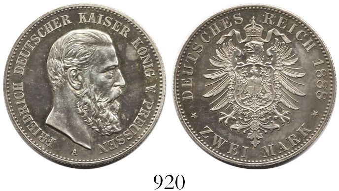 Prussia (German States), 2 mark, Frederick I, 1888-A.