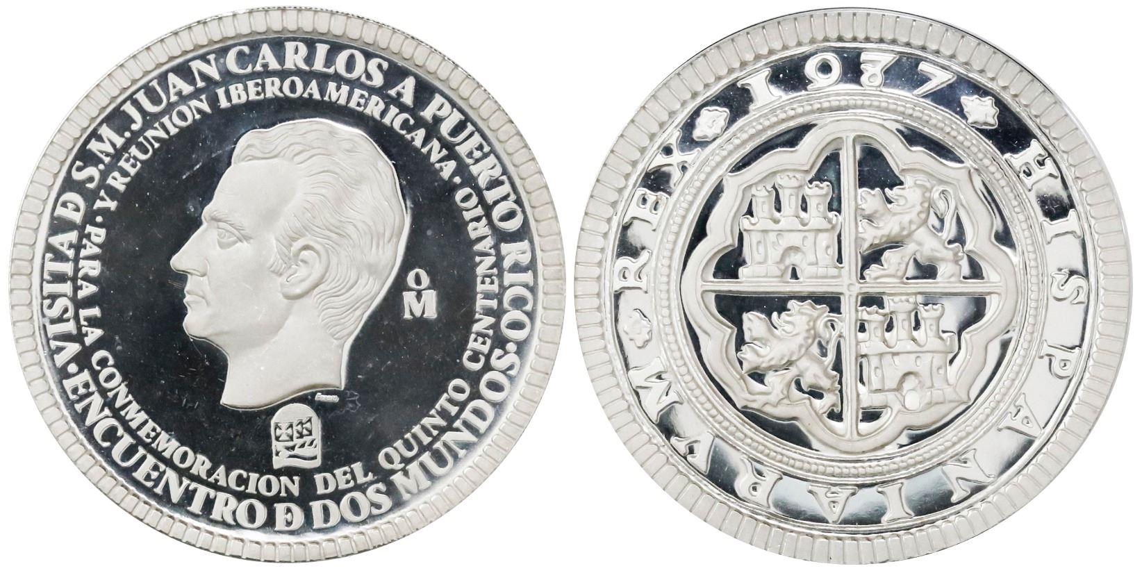 Puerto Rico (struck at the Mexico City mint), large proof silver medal, 1987, visit of Spanish King