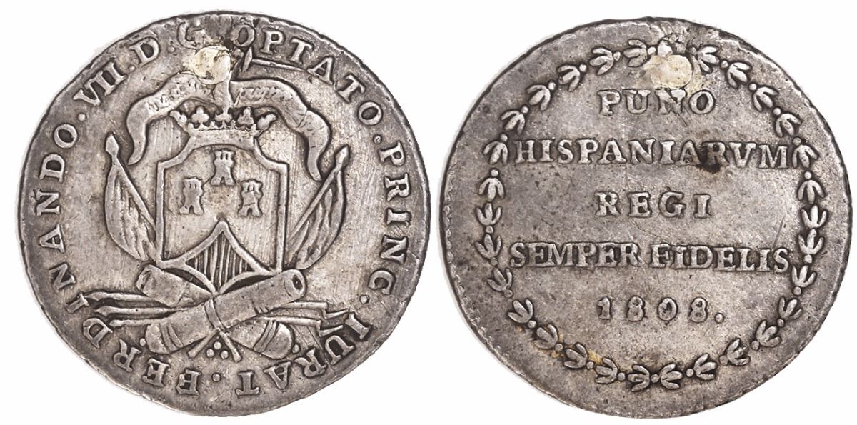 Puno, Peru, 1R-sized silver proclamation medal, Ferdinand VII, 1808, rare.