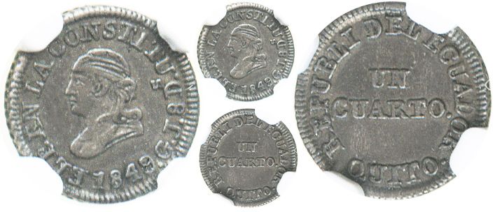 Quito, Ecuador, 1/4 real, 1849GJ, encapsulated NGC AU 53.