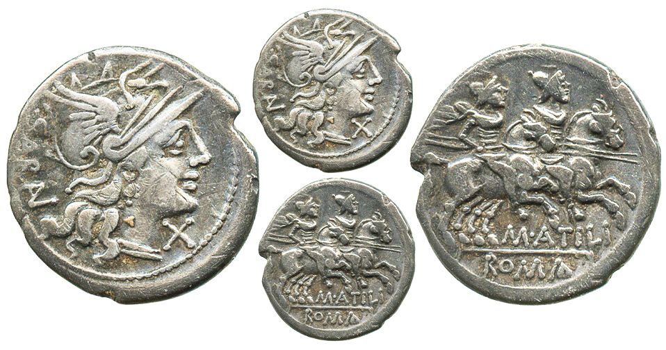 Roman Republic, AR denarius, M. Atilius Saranus, 148 BC, Rome mint.