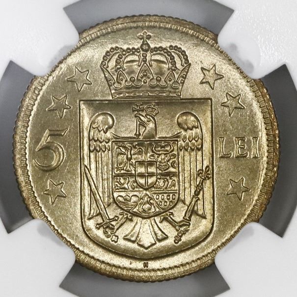 Romania (struck at the Heaton mint), 5 lei, Mihai I, 1930-H, NGC MS 66, finest known in NGC census.