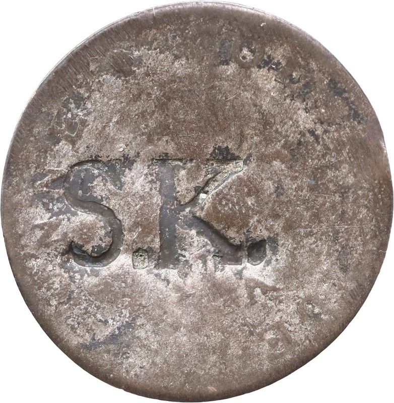 SAINT KITTS & NEVIS, silver-plated black dogg (three halfpence), incuse S.K. countermark (1801) on a
