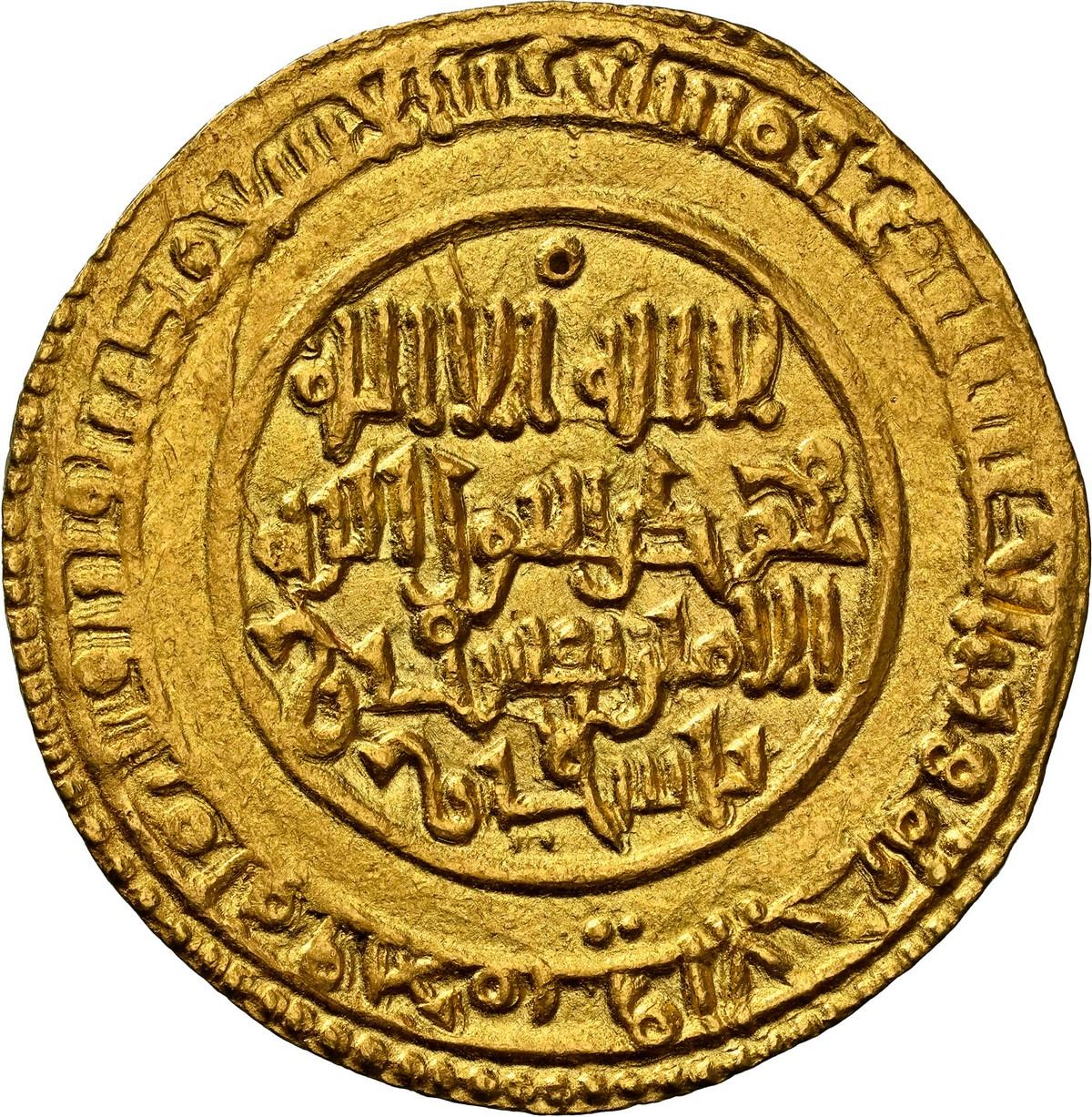 SPAIN (Al-Andalus), Almoravids, Qurtuba (Córdoba) قرطبة, AV dinar, Yusuf ibn Tashfin, 495 AH (1102 AD), date with units in feminine form, very rare, NGC MS 64, ex-Tonegawa. Vives-unl; Hazard-unl. 4.08 grams. Rich color with choice luster, bold and sharp full details, this date not recorded in Vives or Hazard for this mint, tied with previous lot for second finest for the type in the NGC census behind a single MS 65. NGC #8437663-007. Pedigreed to the Tonegawa Collection (stated on label), Auction II (Aureo & Calicó 439, November 2024, lot 354).