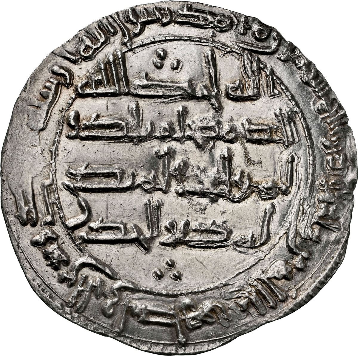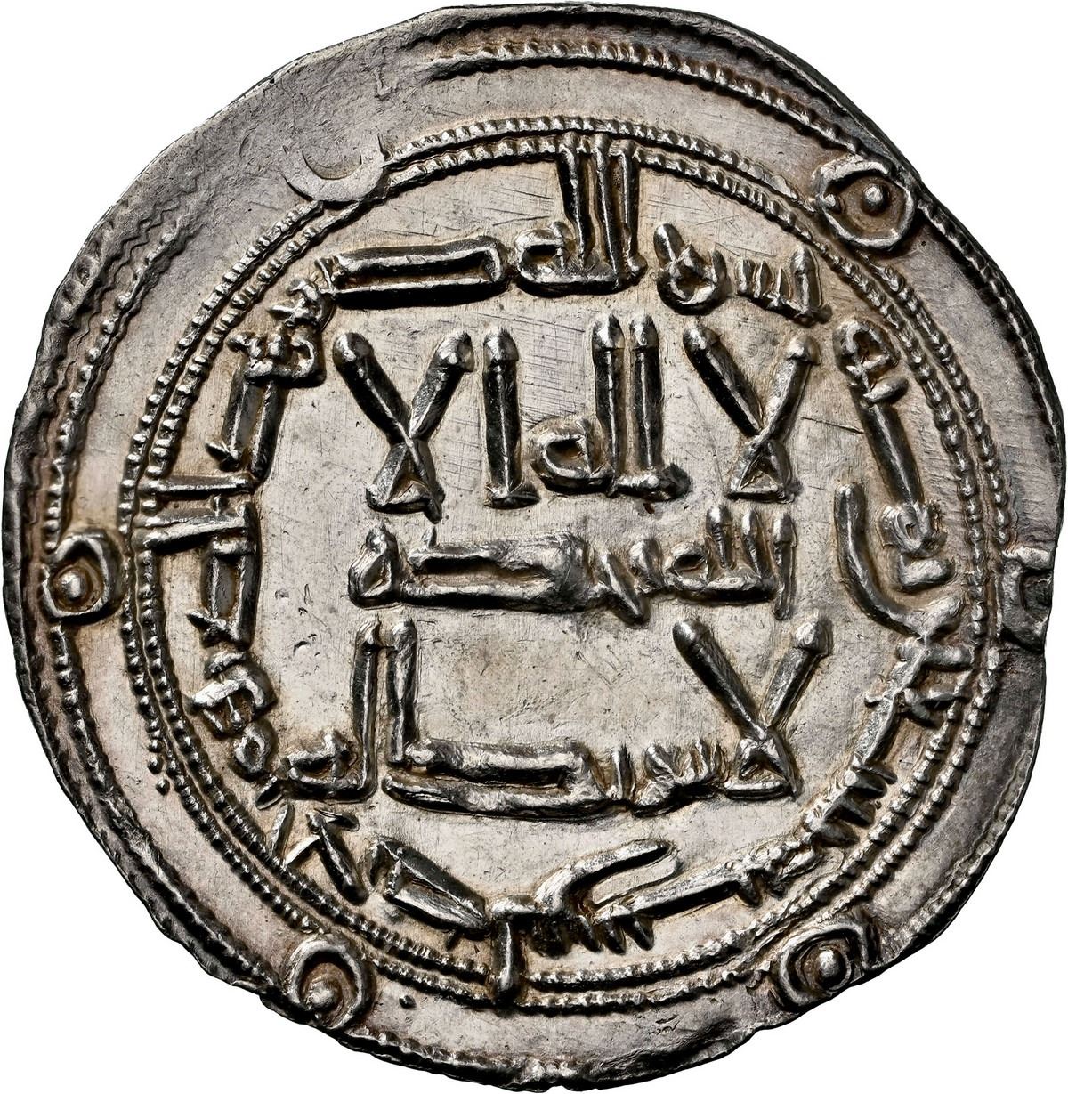 In terms of design, the inscriptions follow the typological tradition established in the earlier period, maintaining the Umayyad use of Qur’anic sura 112, a formula already abandoned by the Abbasids. This conservative adherence to the Umayyad monetary model would remain characteristic throughout the history of the Emirate and later the Caliphate of Córdoba. Only minor variations appear in the form of small geometric or vegetal ornaments, or as in the present specimen, discreet triangular arrangements of dots incorporated into the field. NGC #8437667-002.