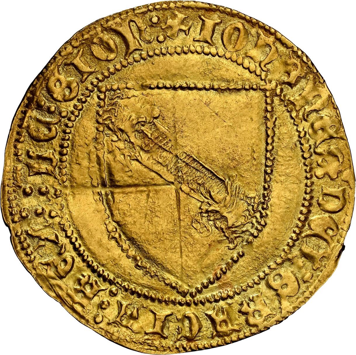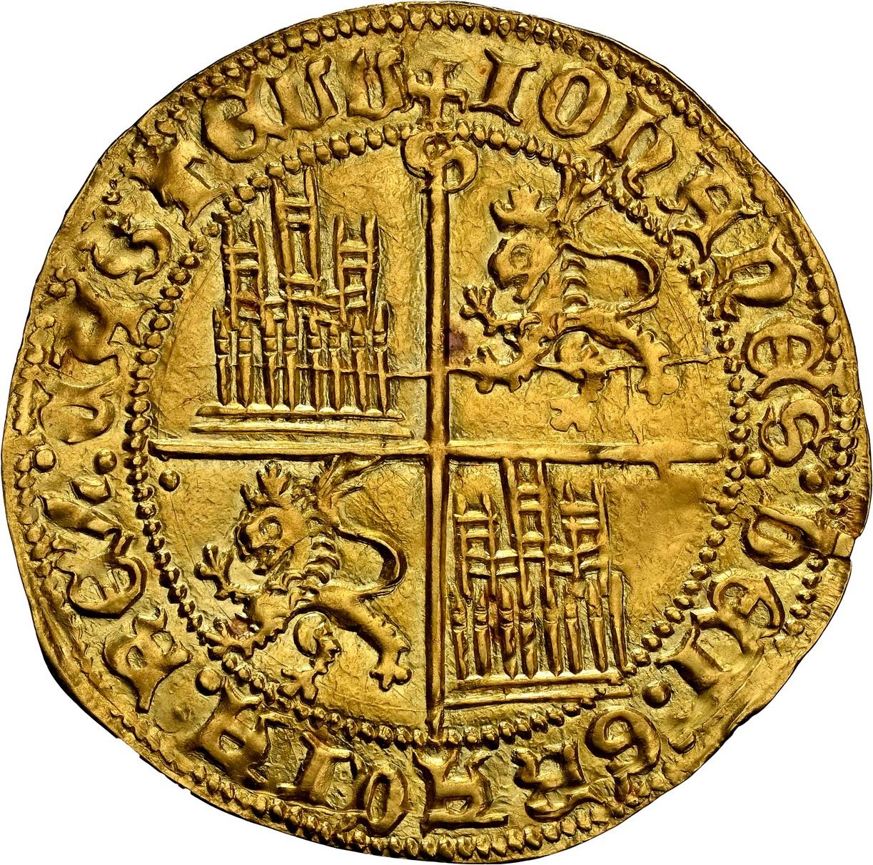 SPAIN (Castile and León), Seville, gold dobla de la banda, John II (1406-1454), S at top of cross, NGC MS 63. Cay-1515; Fr-112. 4.59 grams. Very broad and thin flan with choice full Gothic legends and full inner details, the cross-lions-castles so bold that the arms of the cross are discernible from the other side, stunningly lustrous all over, within the top 20% graded by NGC.