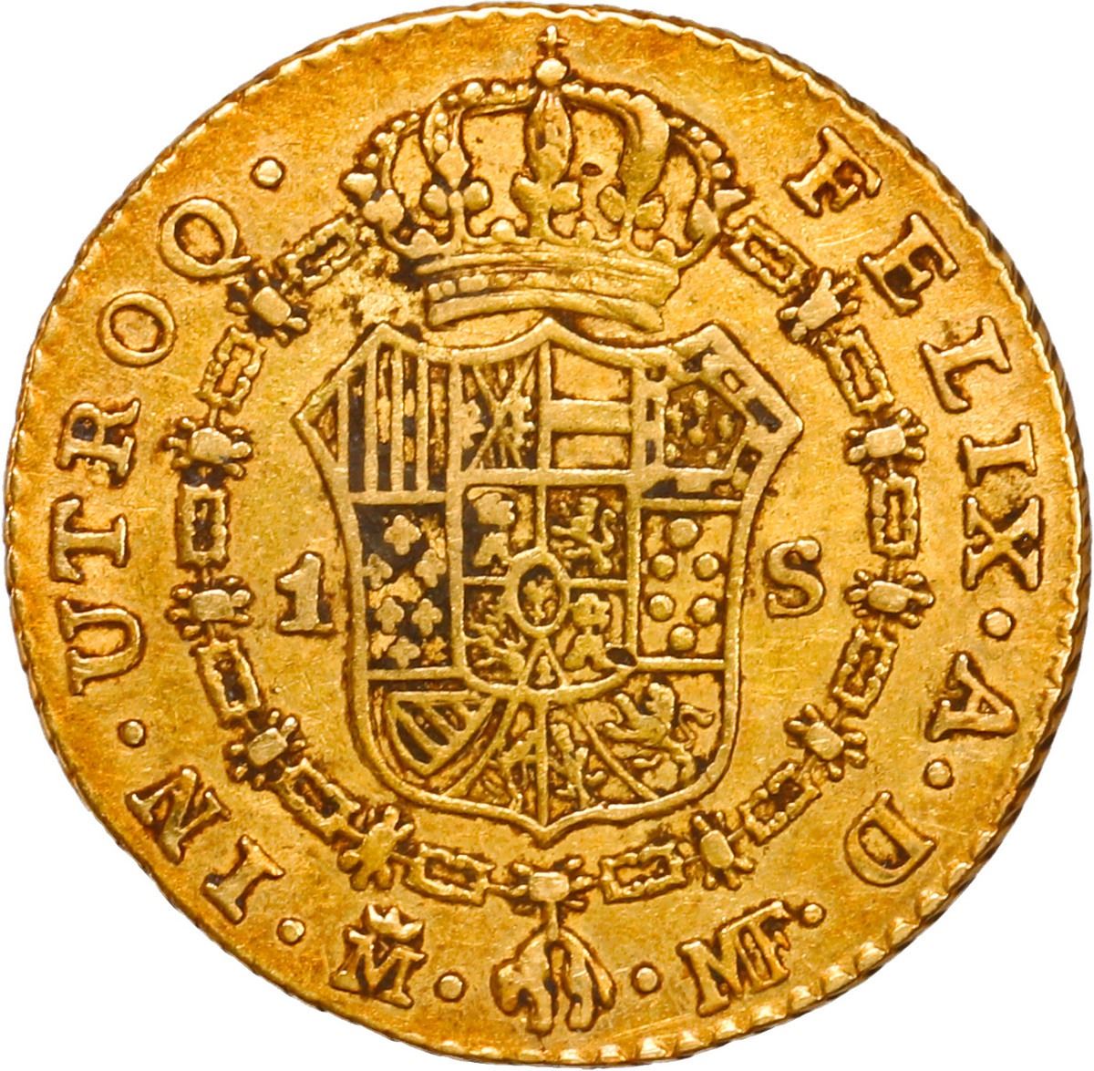 SPAIN, Madrid, gold bust 1 escudo, Charles IV, 1799 MF.