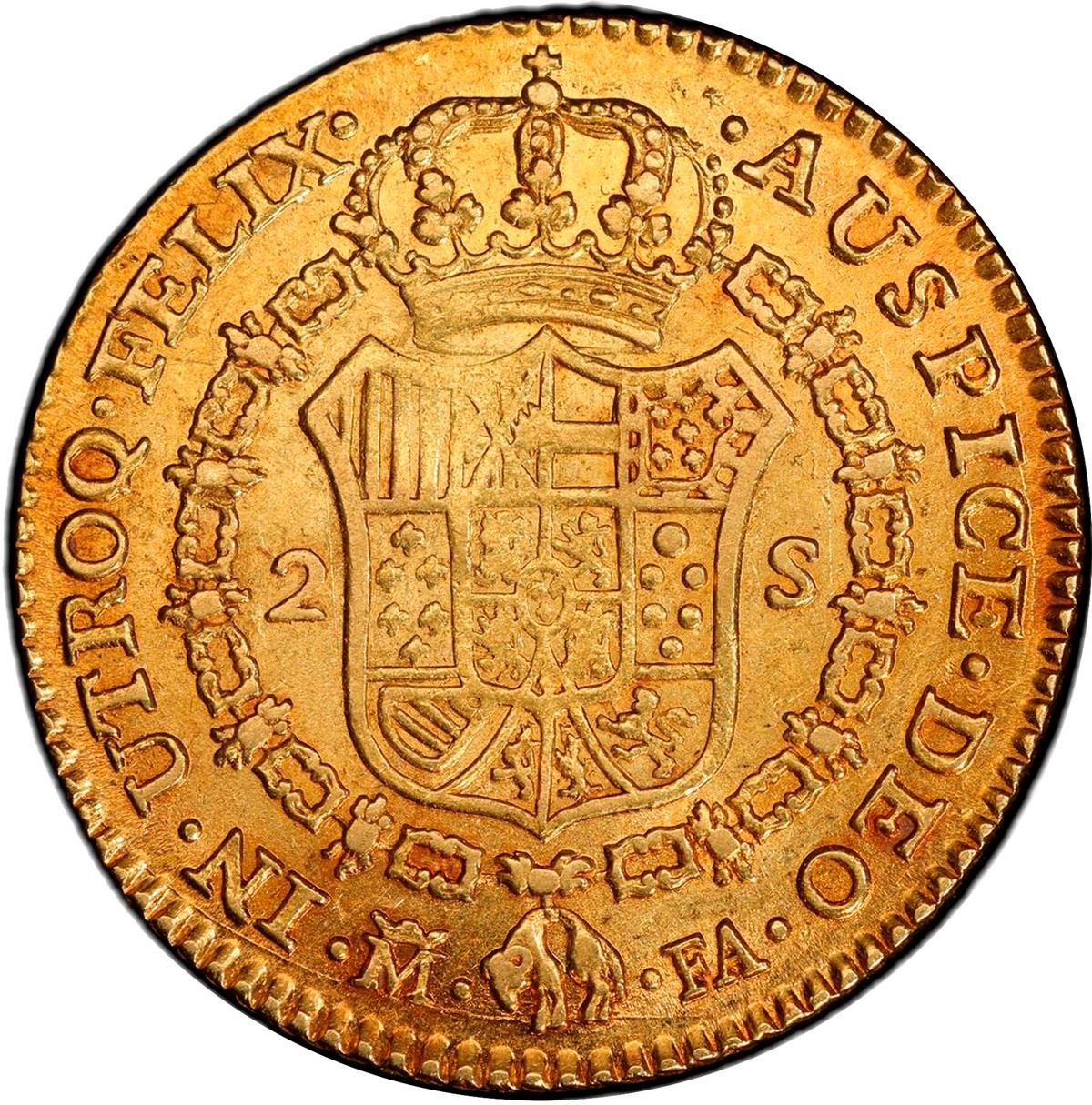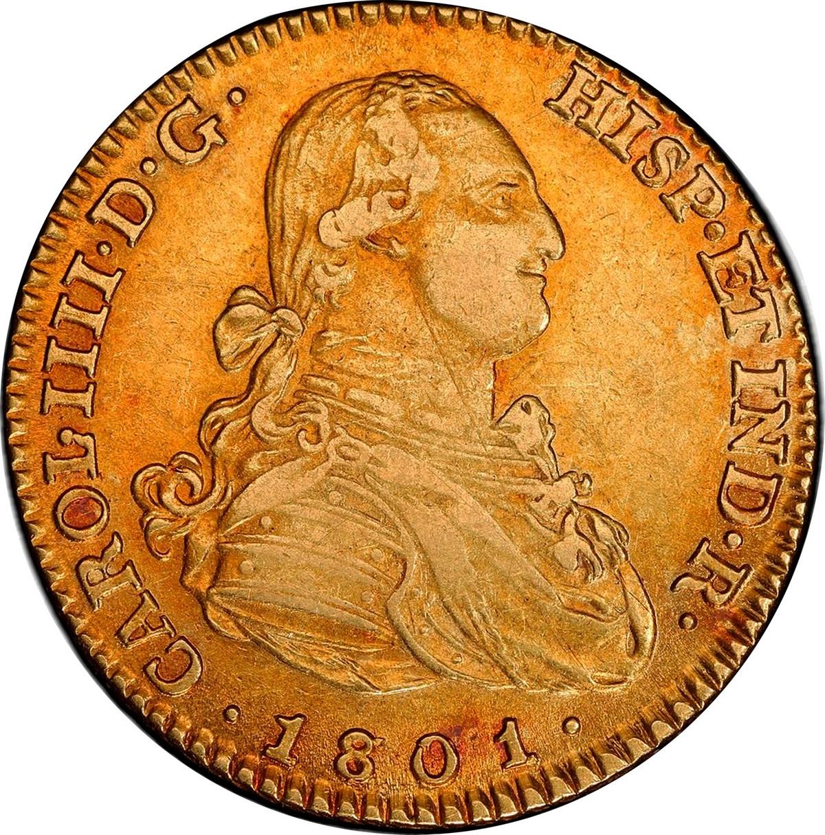 SPAIN, Madrid, gold bust 2 escudos, Charles IV, 1801/791 FA, PCGS AU55, finest and only example in P