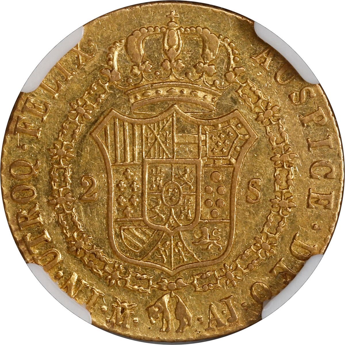 SPAIN, Madrid, gold bust 2 escudos, Ferdinand VII, 1833 AJ, NGC XF 45 ("US Legal Tender Until 1857" Label). Cal-1640; KM-483.1. Final year of issue for the type as Ferdinand VII died in September of 1833. Quite lustrous with modest wear on the high points, popular slab label illustrating how foreign coins like this one were legal tender in the United States up until 1857.
