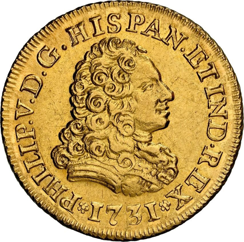 SPAIN, Madrid, gold bust 2 escudos, Philip V, 1731 F, rare, NGC MS 61, finest known in NGC census.