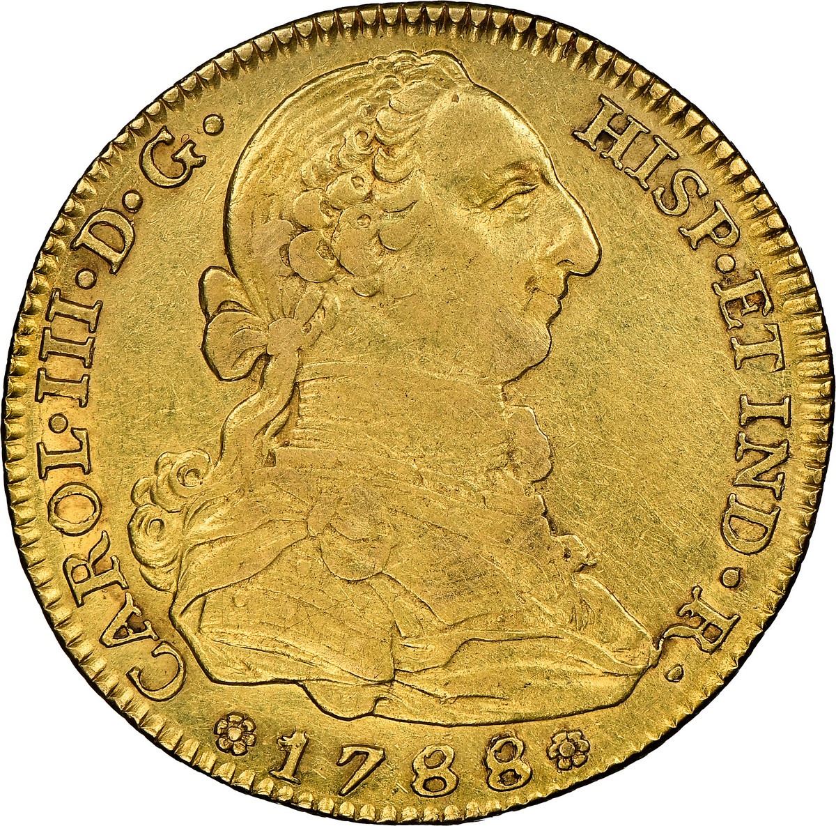 SPAIN, Madrid, gold bust 4 escudos, Charles III, 1788/3 M/JD, very rare, NGC XF 45, finest and only