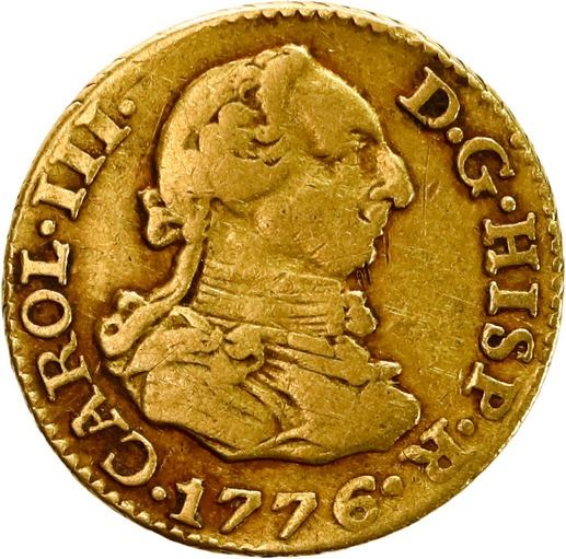SPAIN, Madrid, gold bust ½ escudo, Charles III, 1776 PJ. Cal-1264; KM-415.1; Fr-290. 1.75 grams. VF with a few small marks around the bust, popular date with U.S. collectors.