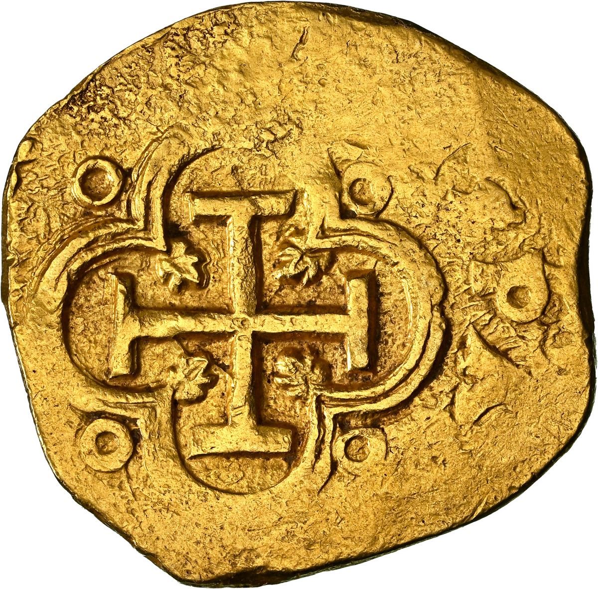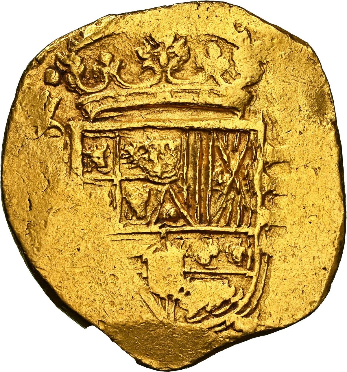 SPAIN, Madrid, gold cob 4 escudos, Philip IV, assayer not visible, rare, NGC AU details / cleaned. Cal-Type 391; KM-107.1; Fr-unl. 13.48 grams. Rich gold color, choice full cross-and-tressure with prominent tressure-dimple ringlets but flat peripheries (hence date not visible), nearly full shield with well-detailed full crown above, distinctive style that is quite a bit rarer than the usual Seville issues (unlisted in Friedberg).