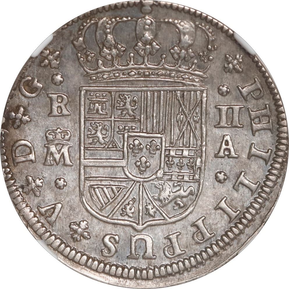 SPAIN, Madrid, milled 2 reales, Philip V, 1723 A, NGC MS 62.