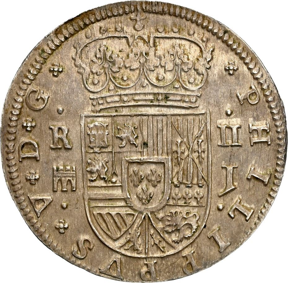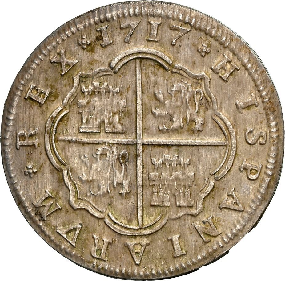 SPAIN, Segovia, milled 2 reales, Philip V, 1717 J, aqueduct with one row of two arches, NGC MS 62.