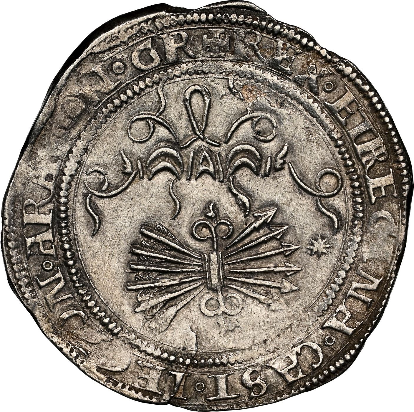 SPAIN, Seville, 4 reales, Ferdinand-Isabel, assayer * on reverse, mintmark oSo to left on obverse, NGC MS 62. López de la Fuente-H5.5; Cal-561. 13.62 grams. Extremely broad flan with full crown and Latin legends, choice full interiors with oSo mintmark to left of well-detailed full shield and assayer * to right of arrows on reverse, legends ending in GRA on obverse and GR on reverse (this exact variety not listed in López de la Fuente), lightly toned and lustrous all over, with minor edge-split.