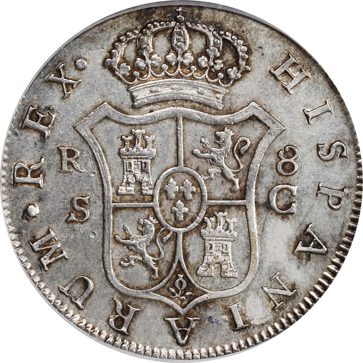 SPAIN, Seville, bust 8 reales, Charles III, 1788 C, PCGS AU details / cleaned, finest known in PCGS census. Cal-1239; KM-414.2. Final year of issue for the type as Charles III died in 1788. This example is technically the finest known in the PCGS census with only one other coin graded XF 40. Rather nice example with noted cleaning being only some minor hairlines, the design details quite bold and with much retained original mint luster across its fields, traces of golden toning highlight the rims and legends.
