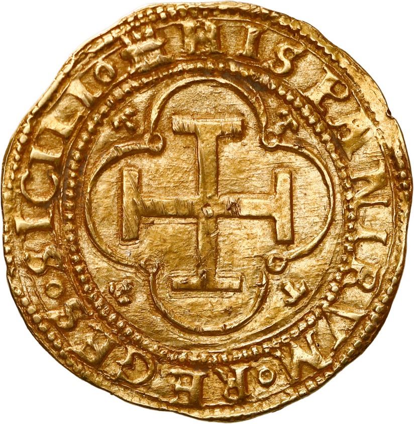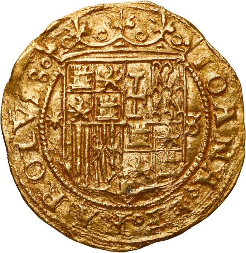 SPAIN, Seville, gold 1 escudo, Charles-Joanna, assayer * to left, mintmark S to right. Fr-153; Cal-197. 3.33 grams. AU+ with nice full details including complete legends on both sides, a few light scratches on the cross.