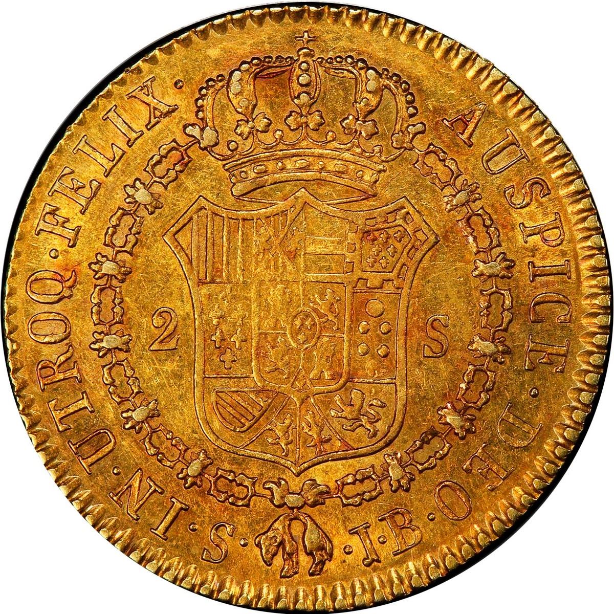 SPAIN, Seville, gold bust 2 escudos, Ferdinand VII, 1830 JB, PCGS AU58, "top pop." Cal-1688; KM-483.2; Fr-316. Rich gold color with beautiful purple toning over muted luster, well-detailed strike with full rims, tied with one other for finest in the PCGS census, with just one finer at NGC in MS 61.