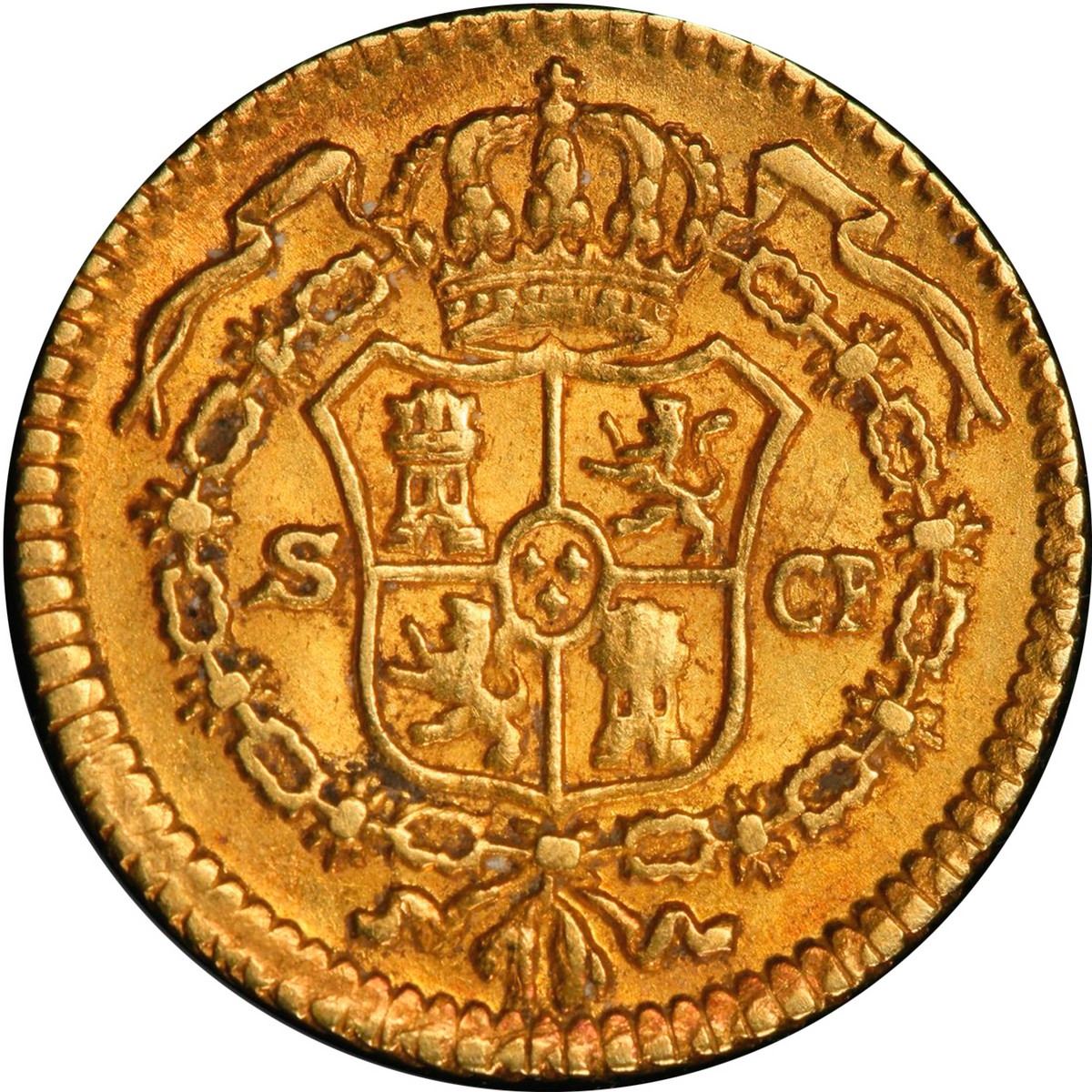 SPAIN, Seville, gold bust ½ escudo, Charles III, 1779 CF, PCGS AU53. Cal-13105; KM-415.2; Fr-291. Deep red toning, full rims, scarce grade for this date (second finest in PCGS census behind a single MS 64, with none in MS at NGC).