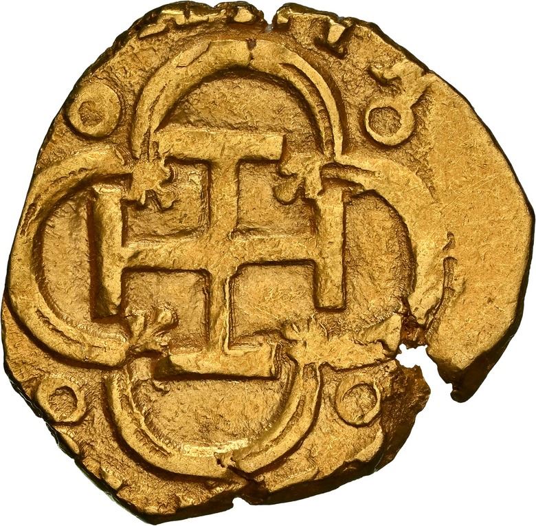 SPAIN, Seville, gold cob 2 escudos, Philip III, assayer D, NGC AU 58. Cal-Type 197; Fr-189; KM-20. 6.74 grams. Bold full shield with nearly full crown above and denomination •II• to right, bold mintmark S to left but weaker assayer D below that, great full cross with 100% full tressure, rich gold color throughout, one small edge-crack.