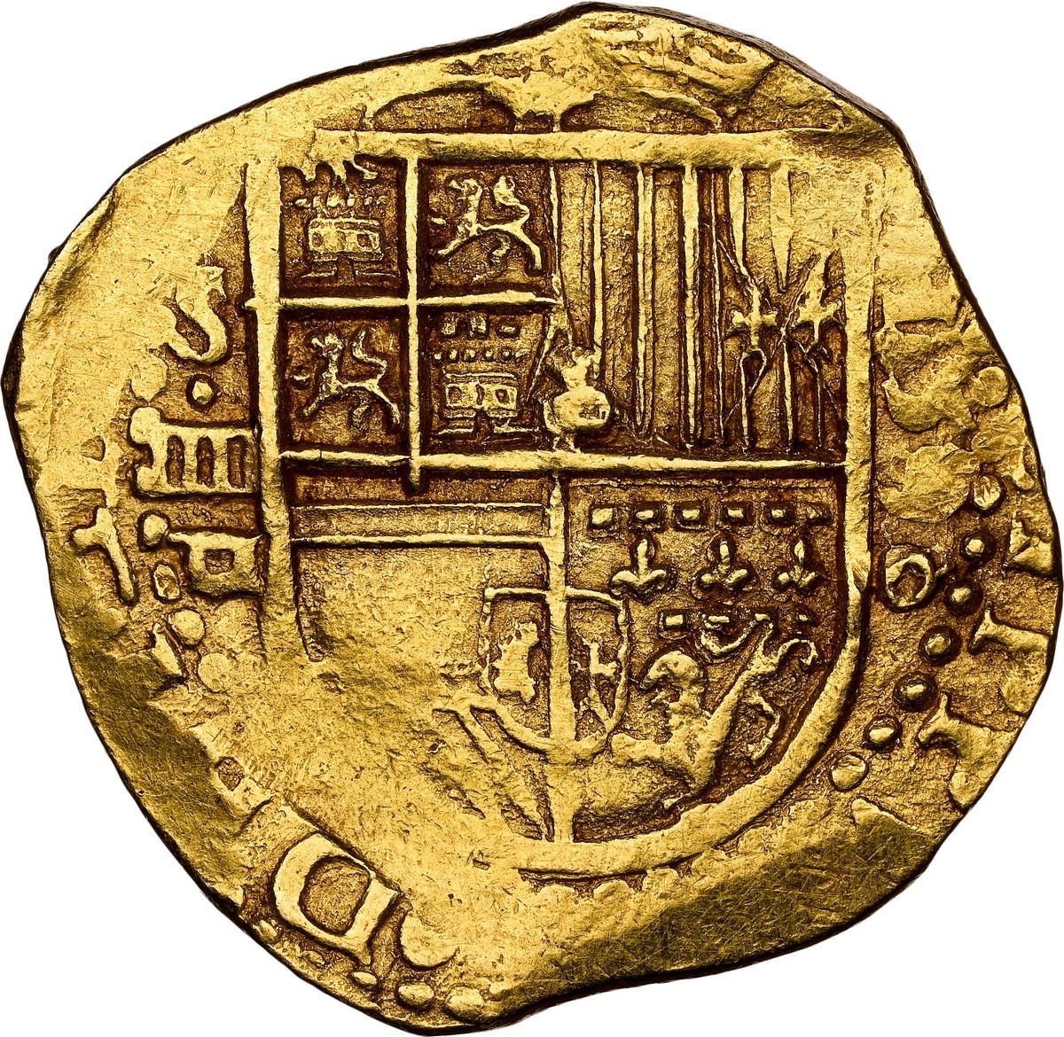 SPAIN, Seville, gold cob 4 escudos, Philip II, 1590/89 date to right, assayer Gothic D below mintmar
