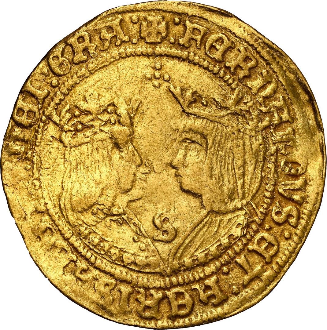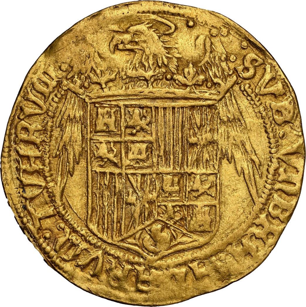 SPAIN, Seville, gold double excelente, Ferdinand-Isabel, five-dot cross at top, mintmark S at bottom
