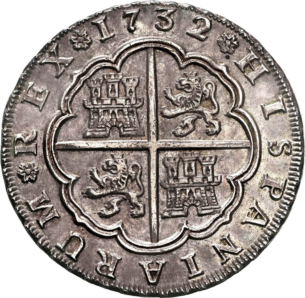The date 1732 is also significant to New World collectors, as it coincides with the introduction of the pillar coinage at Mexico City, marking the broader modernization of Spanish silver coinage across the empire.