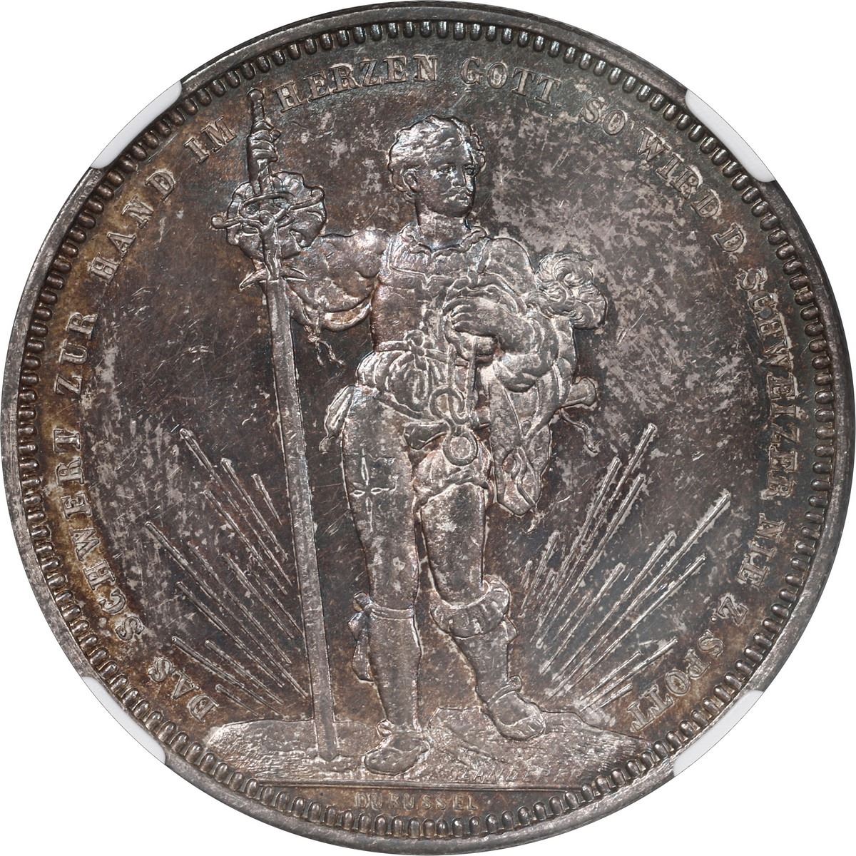 SWITZERLAND, Bern, 5 francs "shooting taler," 1879, Basel Shooting Festival, NGC MS 62.