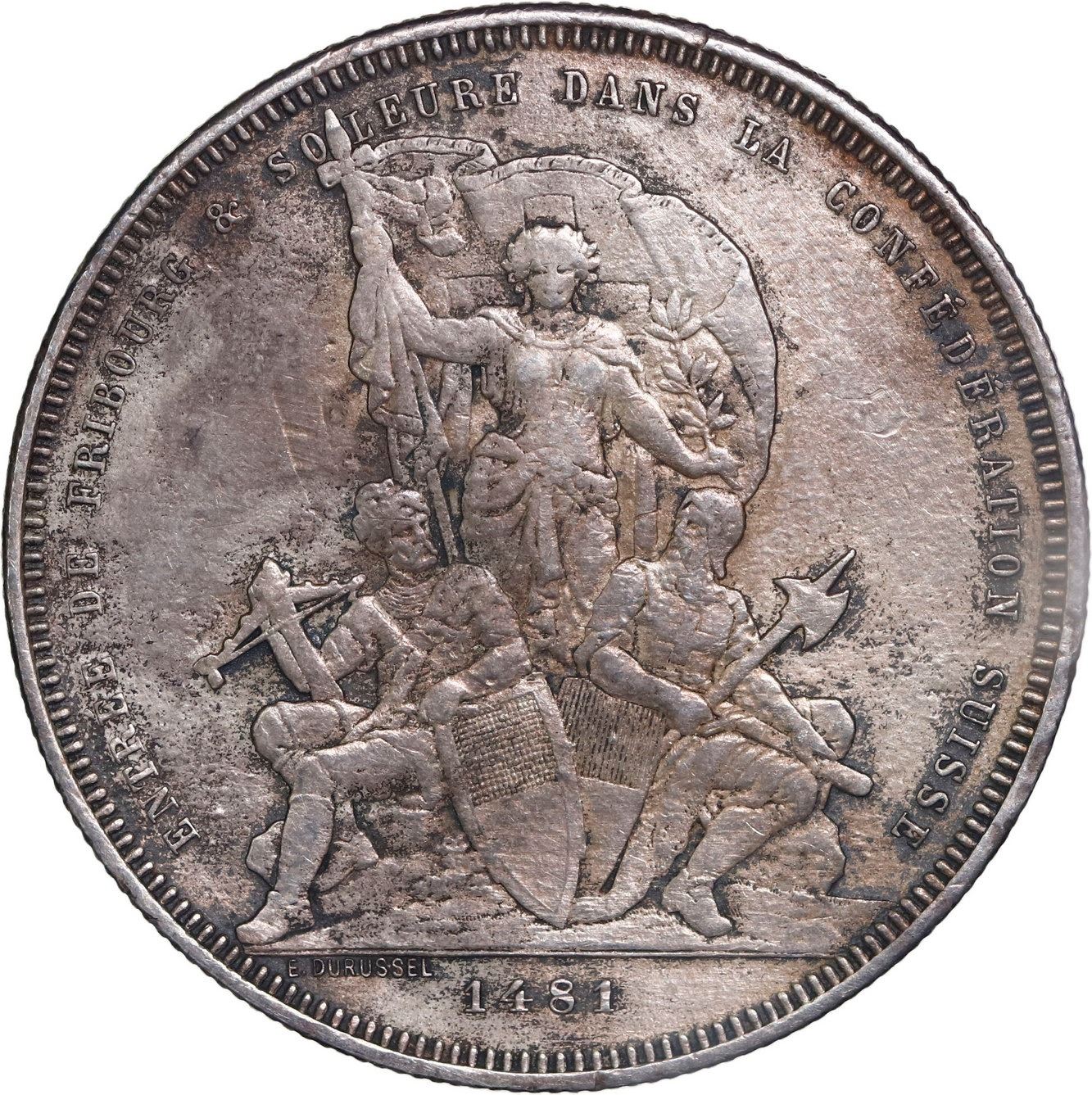 SWITZERLAND, Bern, 5 francs  shooting taler,  1881, Fribourg shooting festival, ex-Peterson.